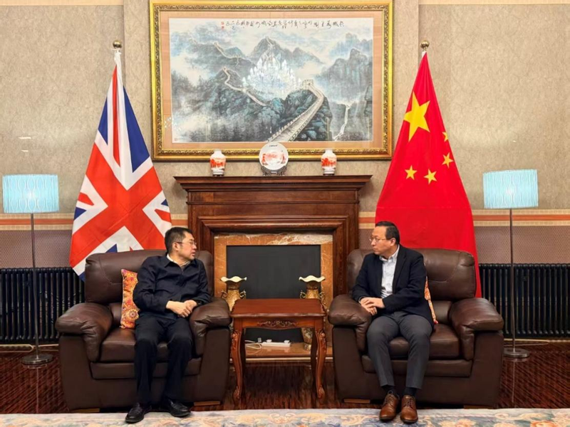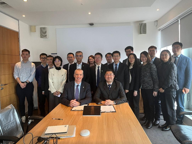 在牛津大学展望与全球发展研究院,蒋传海与院长王士东就卓越人才培养、基地班建设等议题进行了探讨,他邀请更多英方学子来华参与“YES”及“高层次工作坊”等项目,以青年往来增进理解、夯实互信。在哈德斯菲尔德大学,蒋传海与鲍勃·克莱恩校长签署谅解备忘录,聘任其担任我校国际合作与交流指导委员会成员。蒋传海充分肯定了哈德科创孔院阶段性成果,看望了我校外派教师和志愿者。他强调,孔院未来应在持续办好“低碳技术与绿色发展”双边研讨会等品牌项目的基础上,进一步夯实课程体系内涵建设,着力将传播中华优秀传统文化与展示当代中国发展成就相融合,努力将孔院打造成为增进中外人民友谊、推动文明互鉴的坚实平台。