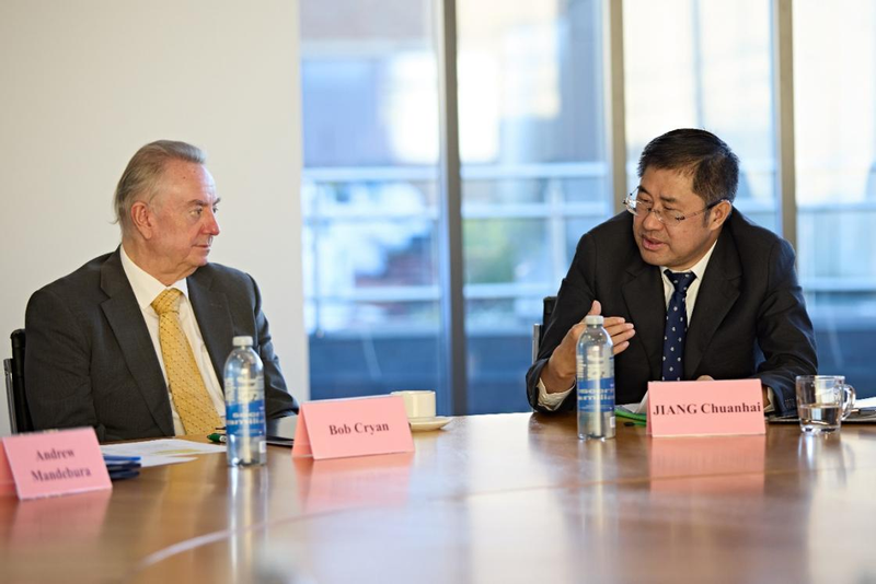 图片说明:蒋传海和哈德斯菲尔德大学校长会谈现场